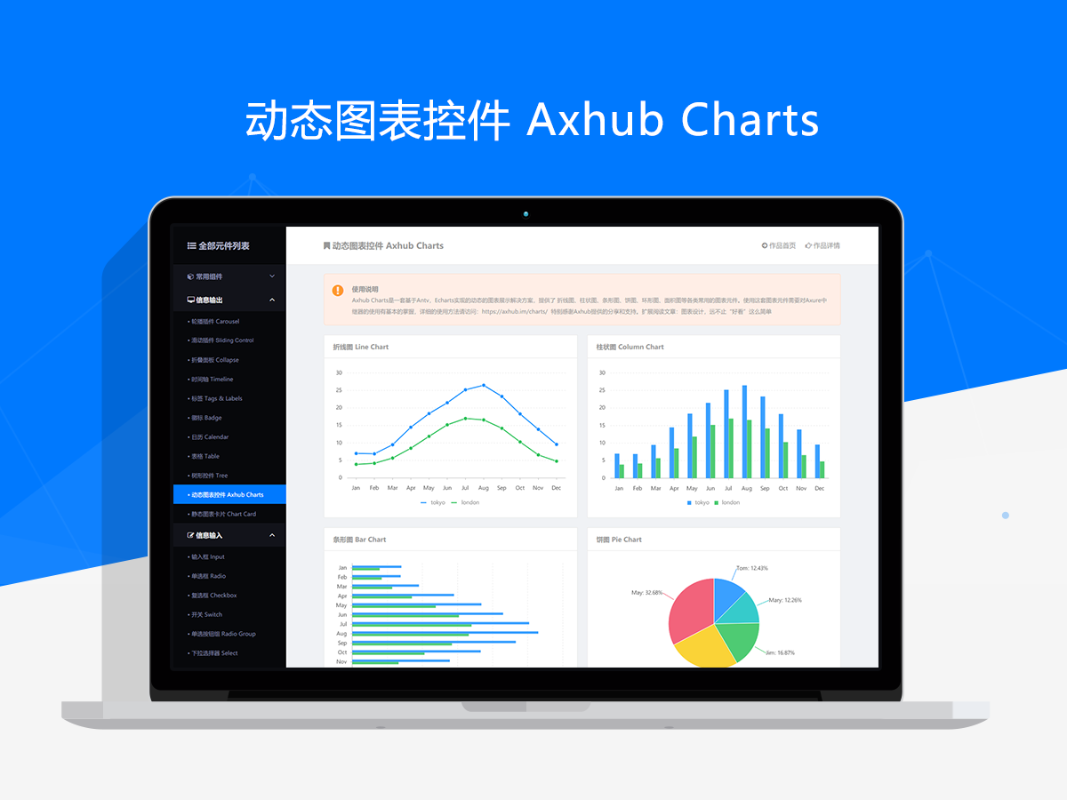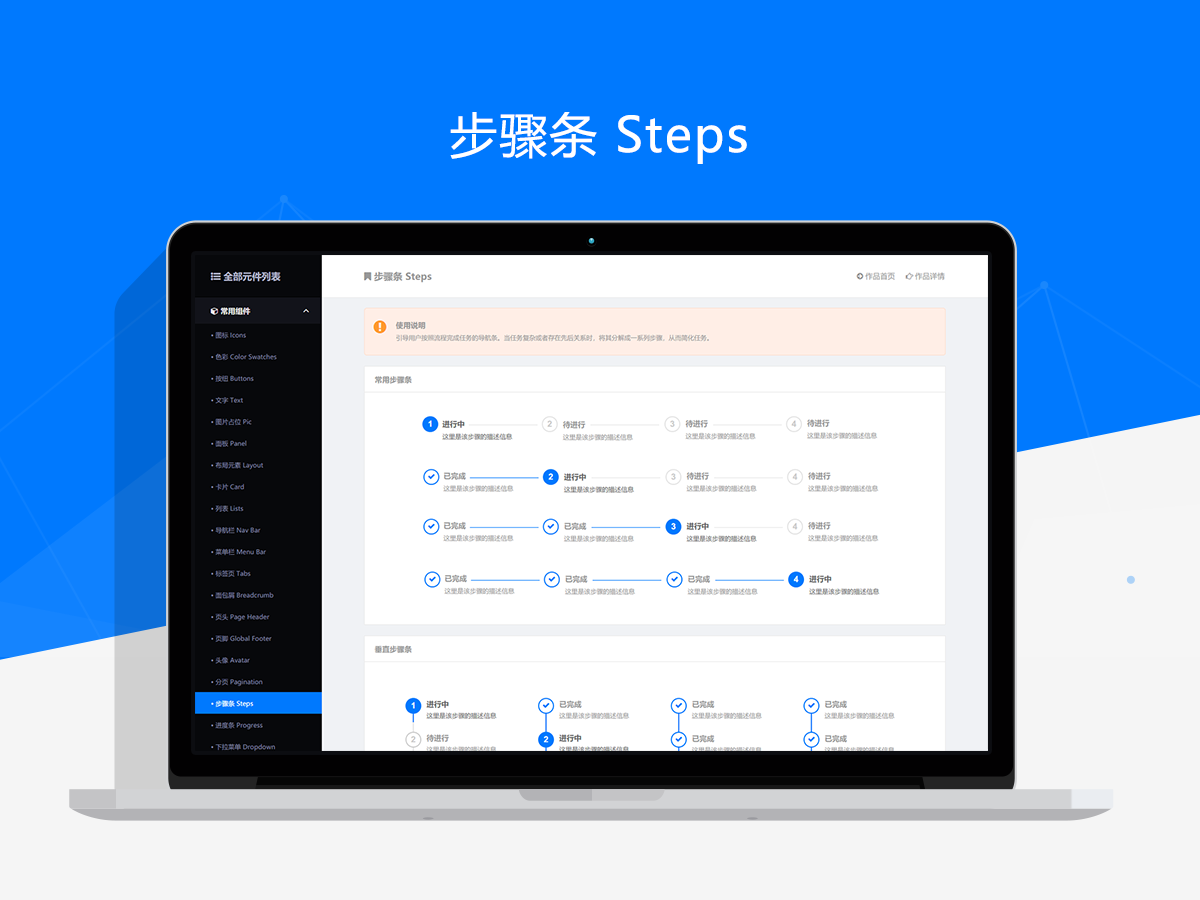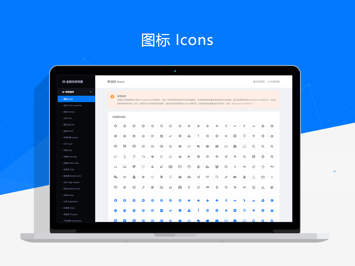 本作品基于Web端交互原型元件库v1基础上优化而来的,在这一年多的时间里我们收集了大量的用户使用反馈,在旧版基础上经过了整体重构后推出了这个全新版本。新版本正式命名为:WEB前后端交互原型通用元件库,它是经过整整数月的打磨完成的一套更加实用和更有参考价值的作品。新版中共包含了常用组件、信息输出、信息输入、信息反馈、综合系列、页面交互等6种元件分类,这些分类由近百款元件类型和上千个独立元件组成。相比于旧版本,新版中包含了更加丰富的元件类型和业务组件,并且去掉了一些实用性不高的元件。同时,新版应用了全新的设计风格和配色方案,整体使用较为安全的蓝色作为主色调,同时简化了相关元素的配色,调整起来也会更加方便。