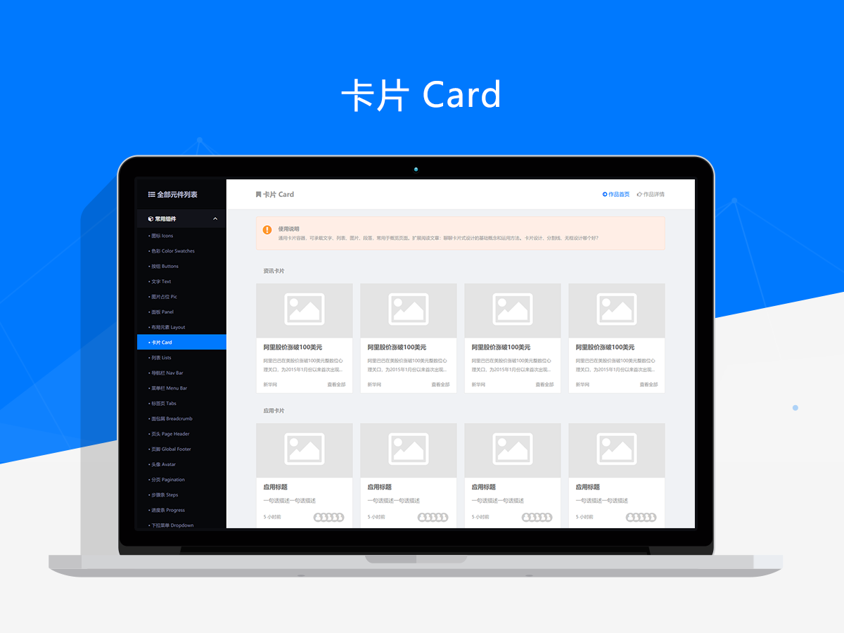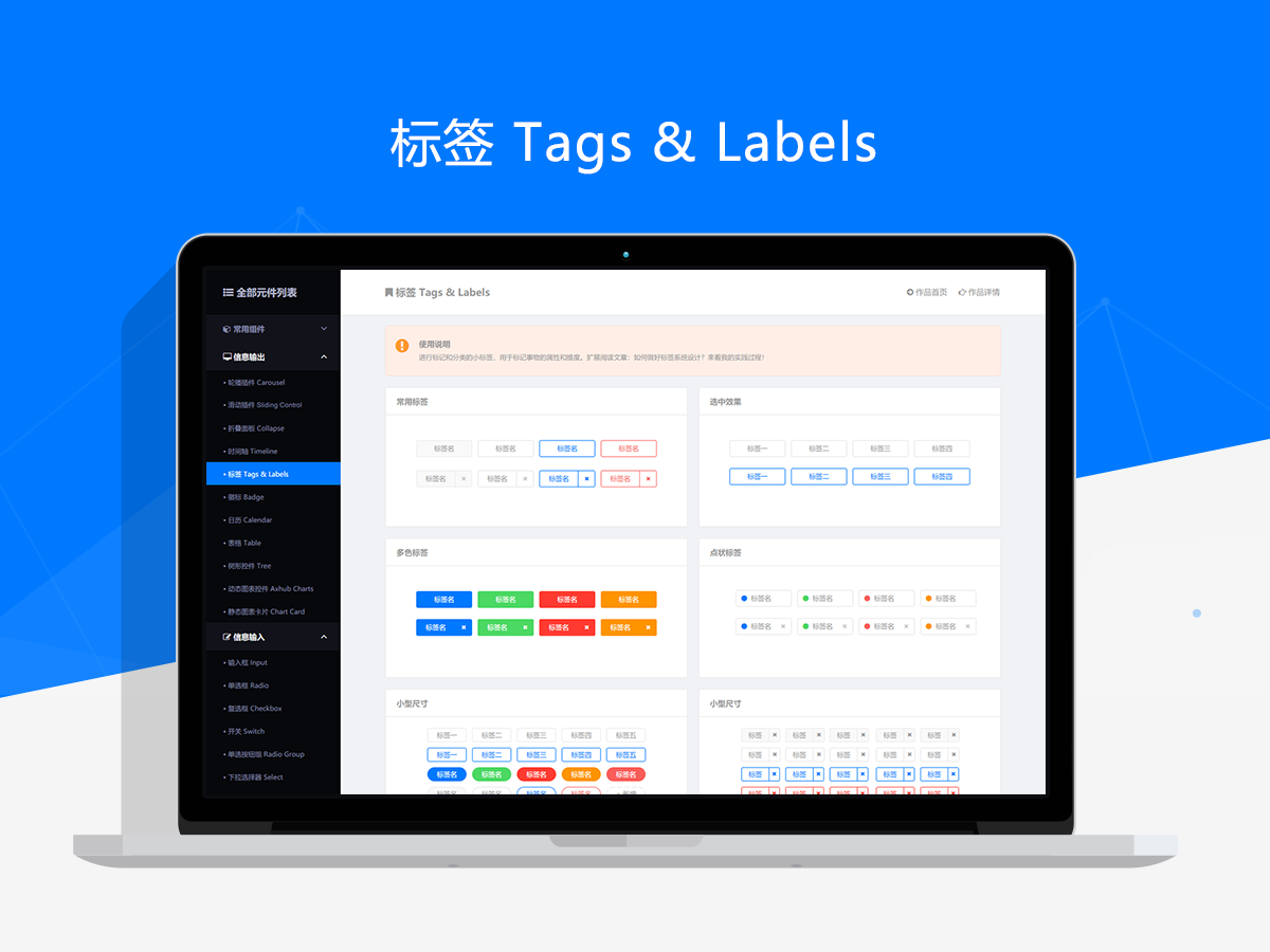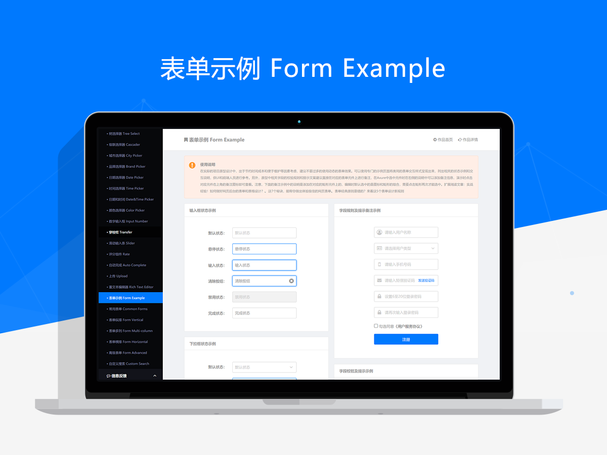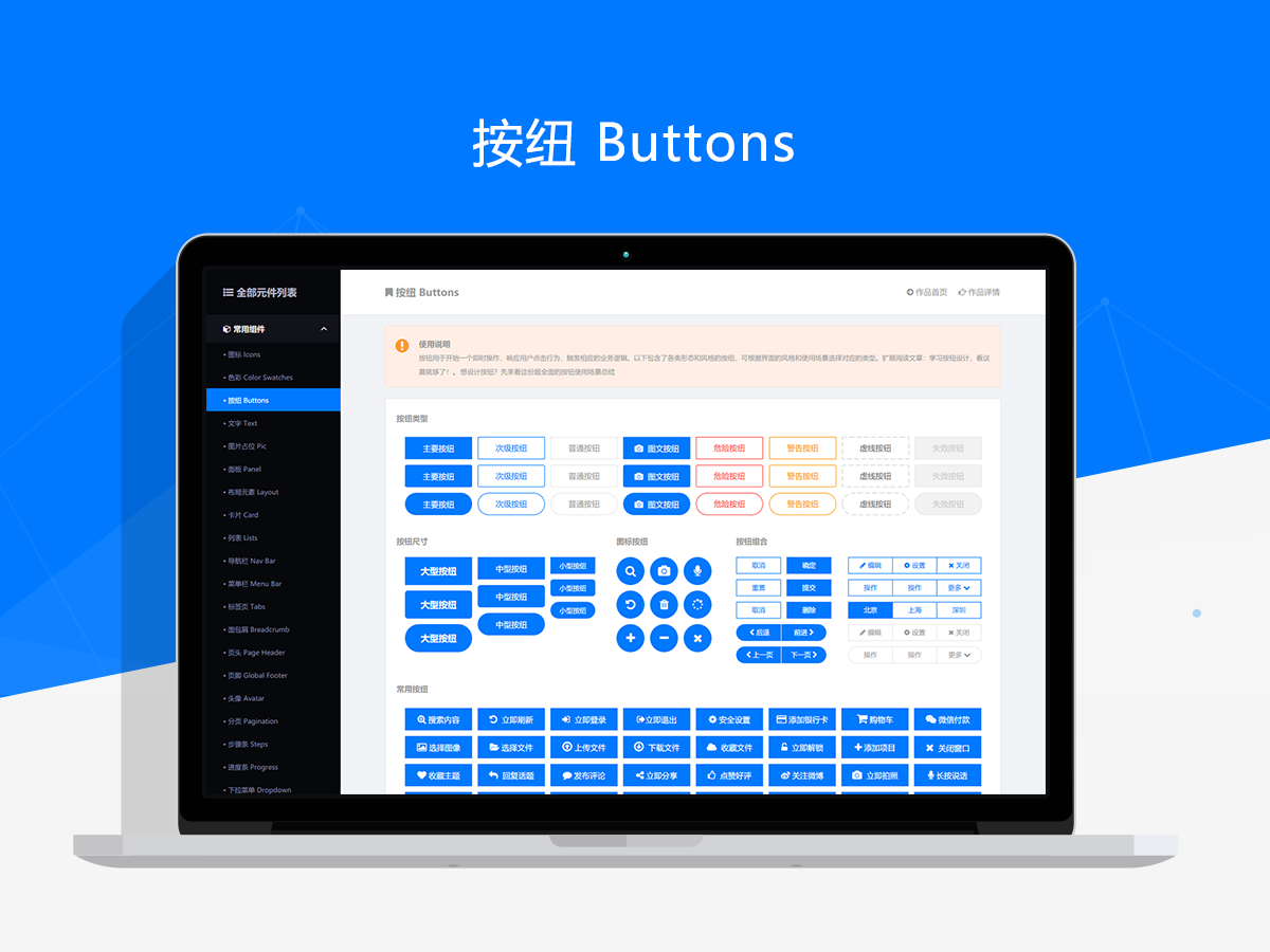 一套完美的元件库不仅仅是由独立的元件组成,更应该具有输出设计规范和标准的指导价值。所以新作品在提升易用性和可用性的同时,还提供了很多规范性的使用建议和参考。同时,每个元件类型都有详细的介绍和使用说明,而且关联分享了相关交互规范和用户体验类文章,所以这套作品不仅是一套实用的元件库,更是一份全面的交互原型设计指南。