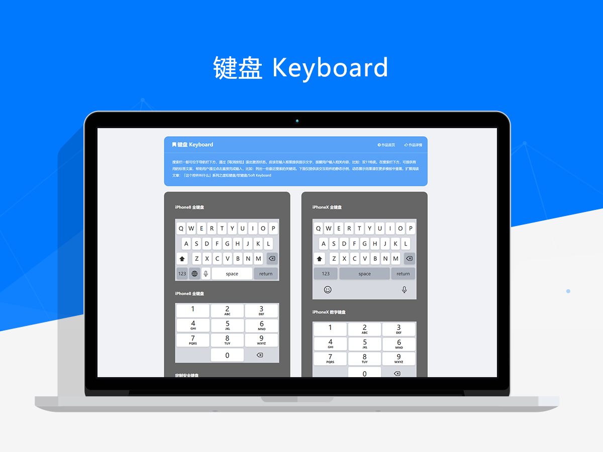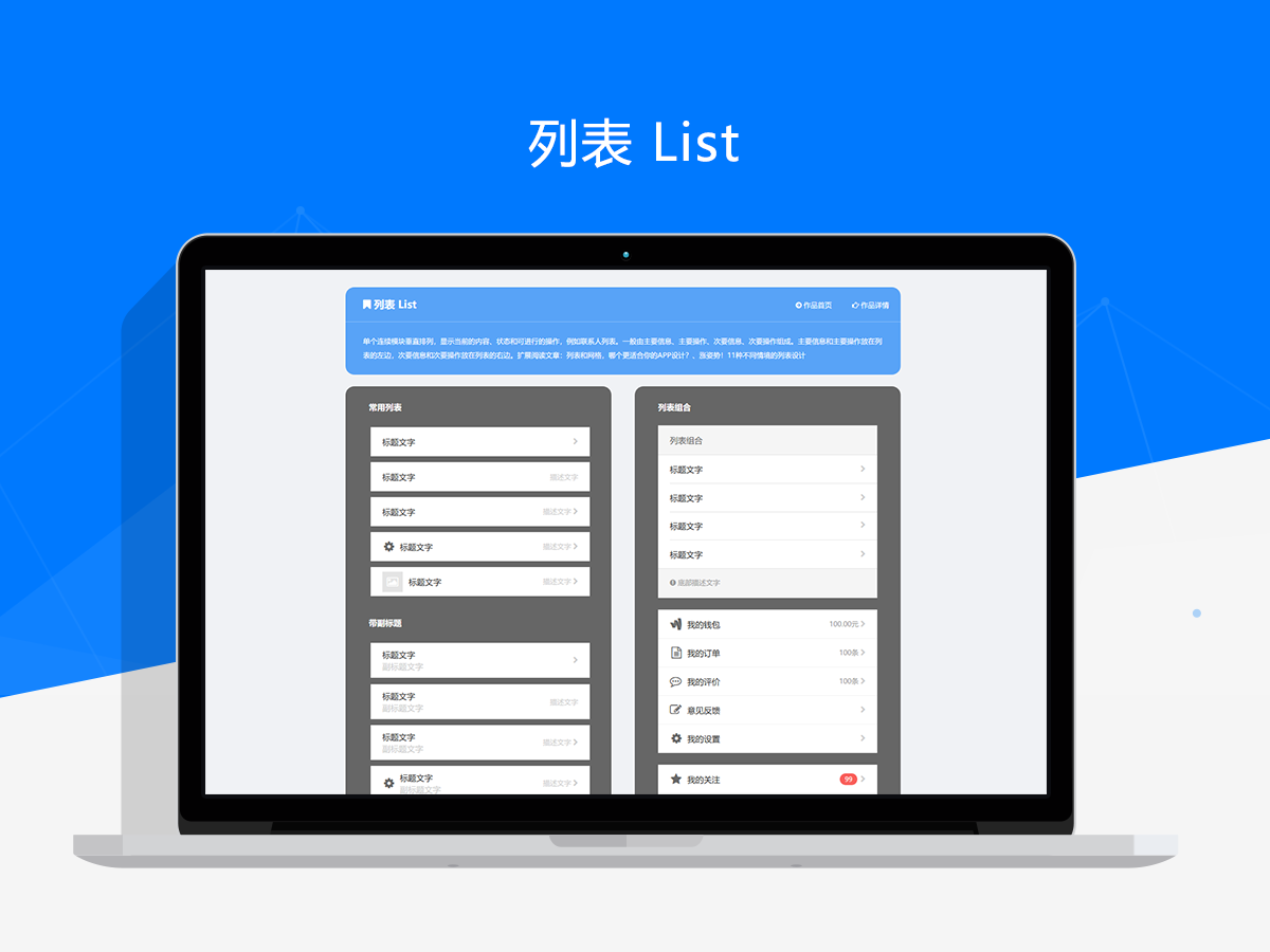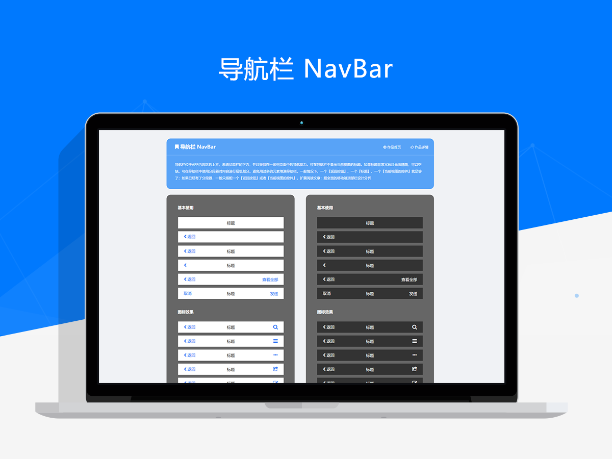 作品中还提供了常用手机设备模型及移动端交互手势图标等素材,这些素材可以让你输出的原型方案更加标准和规范。在提升易用性和可用性的同时,作品中还提供了很多规范性的使用建议和参考。每个元件类型都有详细的介绍和使用说明,而且关联了相关交互规范和用户体验类文章,所以这套作品不仅是一套实用的元件库,更是一份全面的交互原型设计指南。