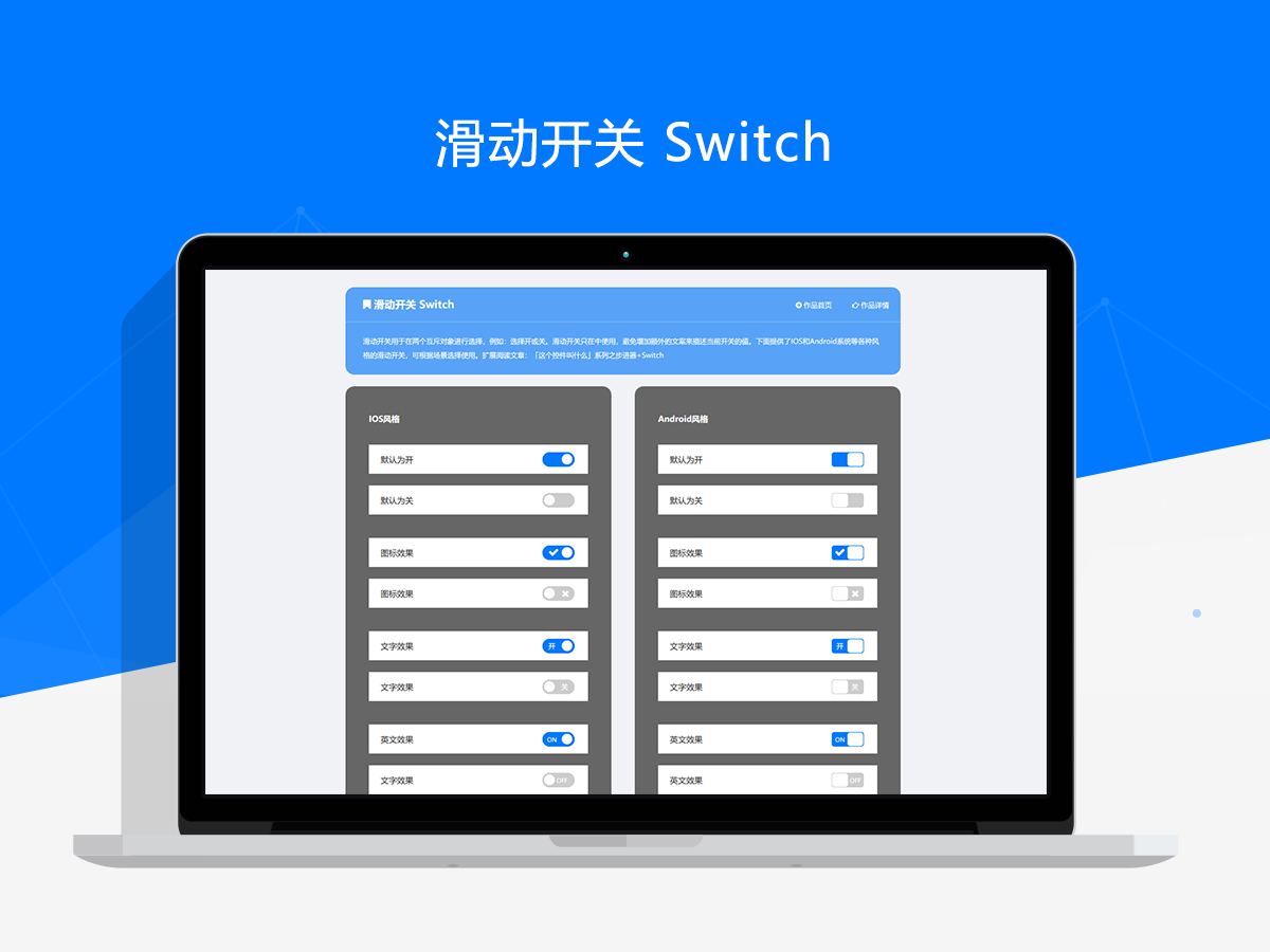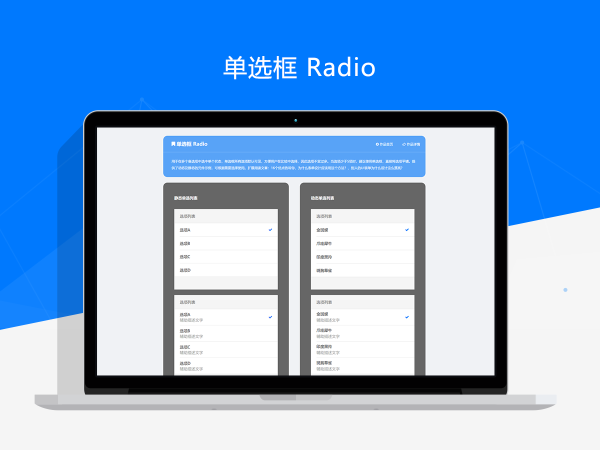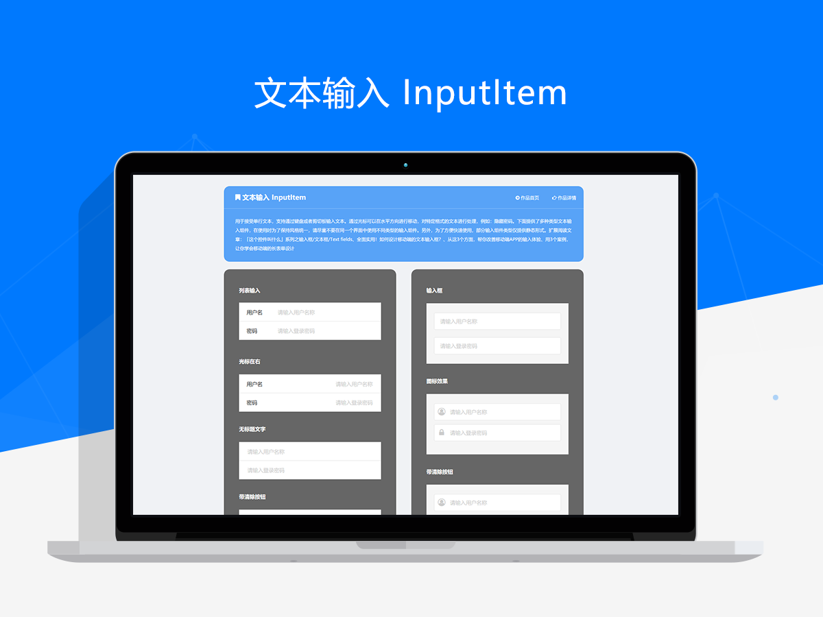 作品中还提供了常用手机设备模型及移动端交互手势图标等素材,这些素材可以让你输出的原型方案更加标准和规范。在提升易用性和可用性的同时,作品中还提供了很多规范性的使用建议和参考。每个元件类型都有详细的介绍和使用说明,而且关联了相关交互规范和用户体验类文章,所以这套作品不仅是一套实用的元件库,更是一份全面的交互原型设计指南。