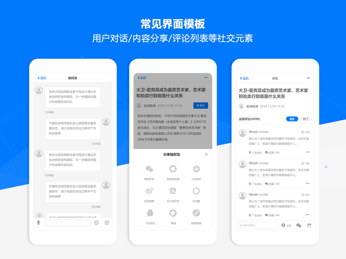本套作品的中相关元件的整理参考了Ant Design、MUI、Frozenui等前端组件库,动态图表组件由原型协作与发布平台Axhub提供,作品中关联分享的相关交互规范和用户体验类文章全部整理自优设网UISDC,在此特别注明并向以上相关平台表示感谢。