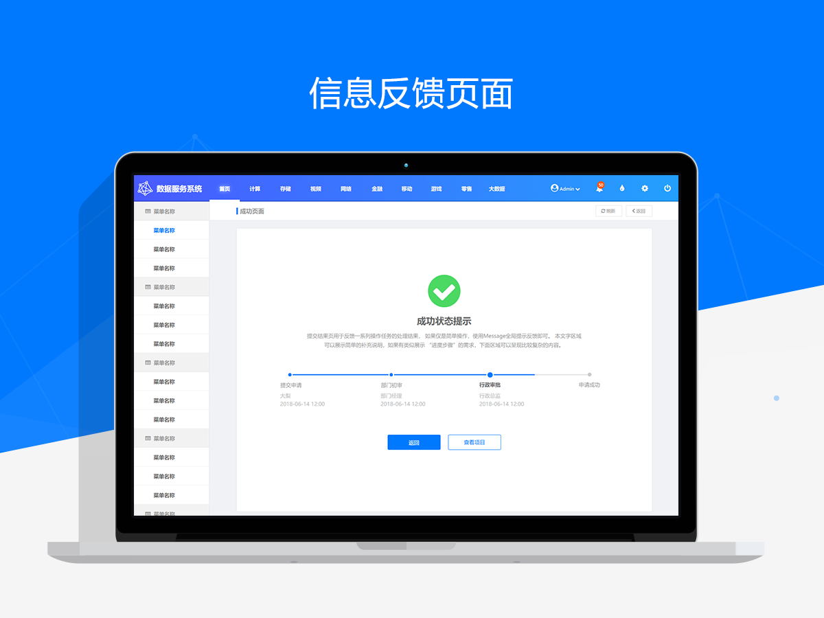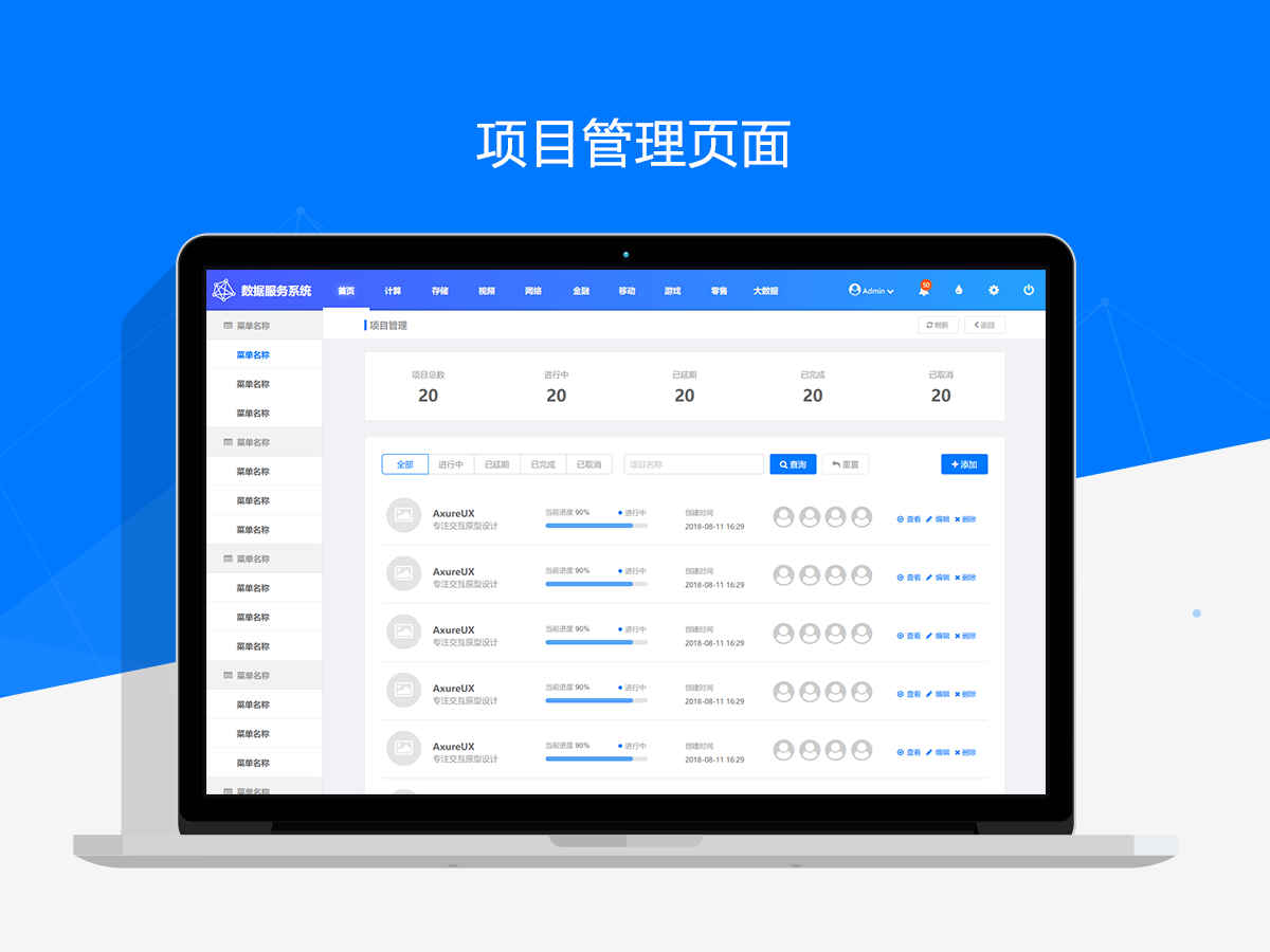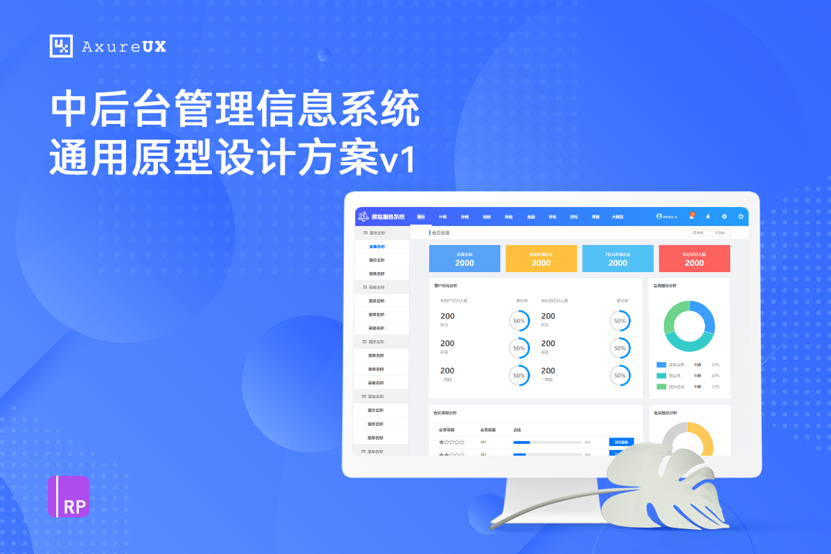 之前AxureUX发布了基于电商后台业务系统的原型模板,并总结分享了相关的设计方法和框架模板,收获了非常良好的用户反馈,并被很多产品同行应用到了实际的原型设计工作中。为了满足更多的中后台系统的原型方面的设计需求,我们参考了大量的案例并推出了这套全新的设计方案。这套作品保留了自适应布局框架和内联框架链接页面等特性,同时简化了相关的界面布局和交互事件,具有更易应用和维护等特点。同时,作品使用了较为安全的蓝色作为主色调,可以满足更丰富的应用场景。