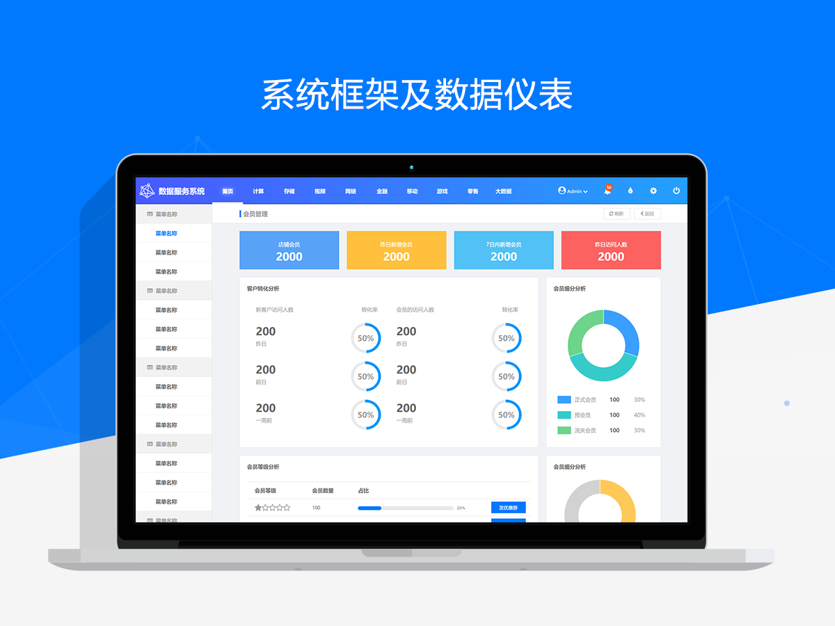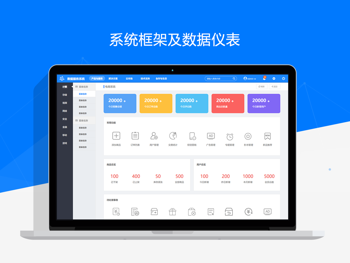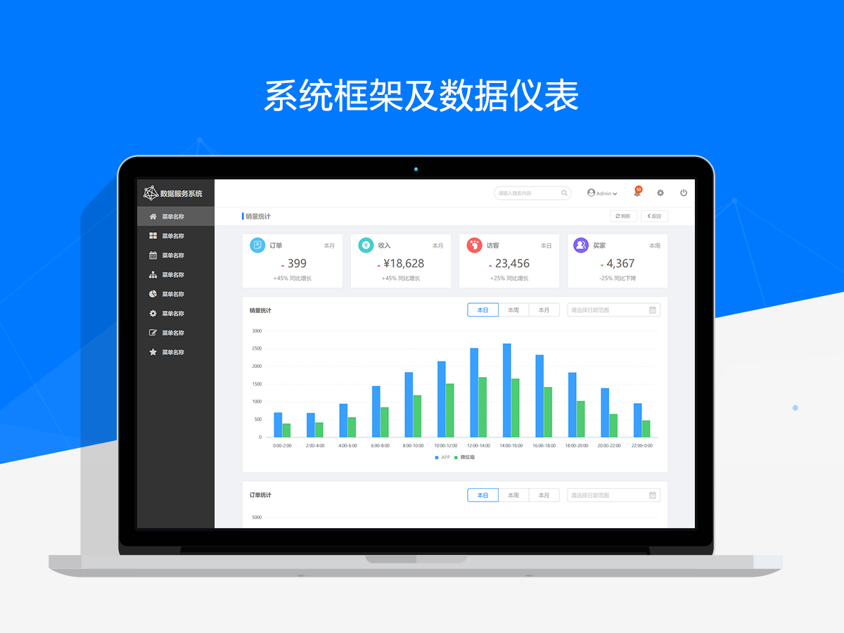 之前AxureUX发布了基于电商后台业务系统的原型模板,并总结分享了相关的设计方法和框架模板,收获了非常良好的用户反馈,并被很多产品同行应用到了实际的原型设计工作中。为了满足更多的中后台系统的原型方面的设计需求,我们参考了大量的案例并推出了这套全新的设计方案。这套作品保留了自适应布局框架和内联框架链接页面等特性,同时简化了相关的界面布局和交互事件,具有更易应用和维护等特点。同时,作品使用了较为安全的蓝色作为主色调,可以满足更丰富的应用场景。