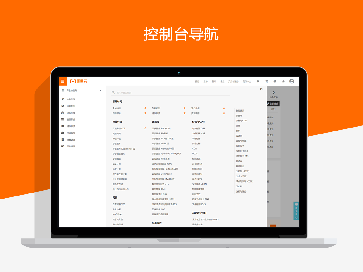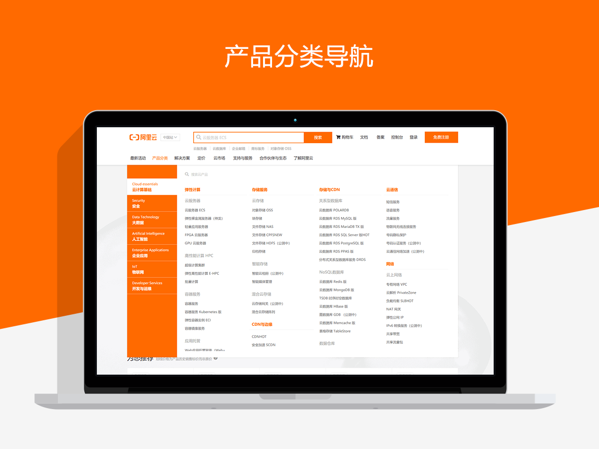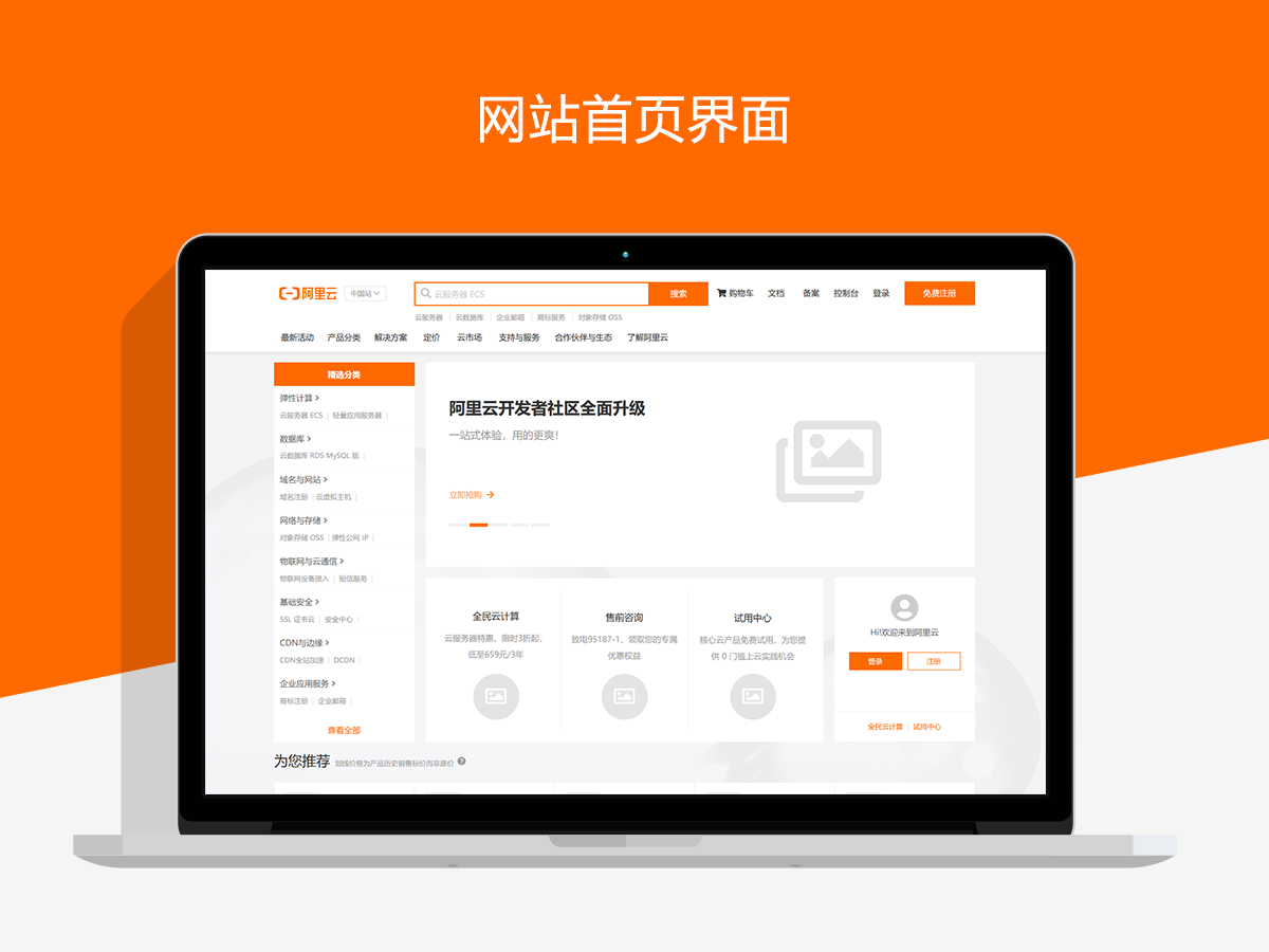 近期阿里云网站进行了全新的改版,改版范围包含了前台的产品展示界面、用户控制台、费用中心、产品导航等,新版风格以橙黄色系为主,整体布局更加简洁和扁平化。阿里云有着非常庞大的业务体系和丰富的产品类型,阿里云网站的导航体系和交互设计对于学习大型网站产品设计有很高的参考价值。为了方便大家进行学习和借鉴,我们使用Axure还原了阿里云新版网站的相关的主要界面,包含了网站首页、注册及登录、用户控制台、费用中心、消息中心等。