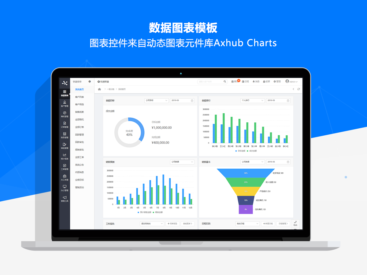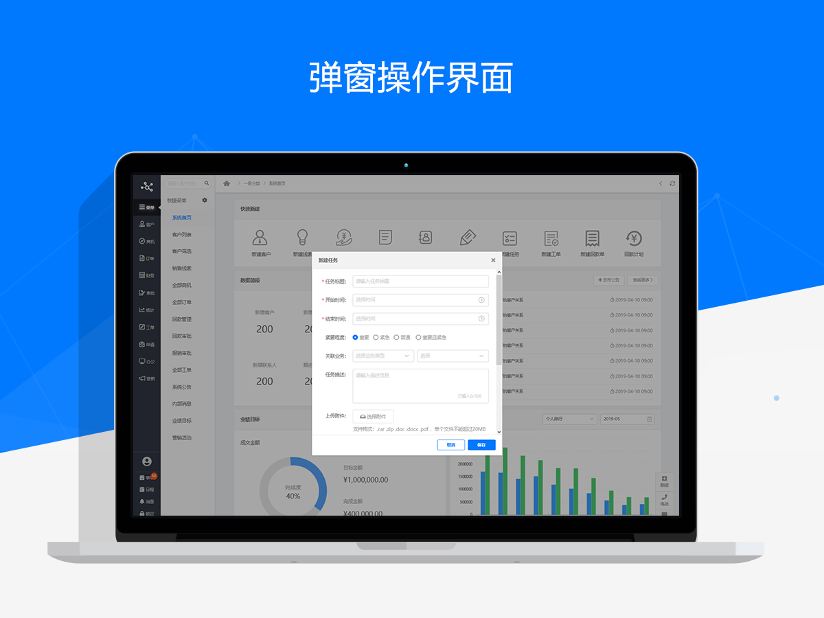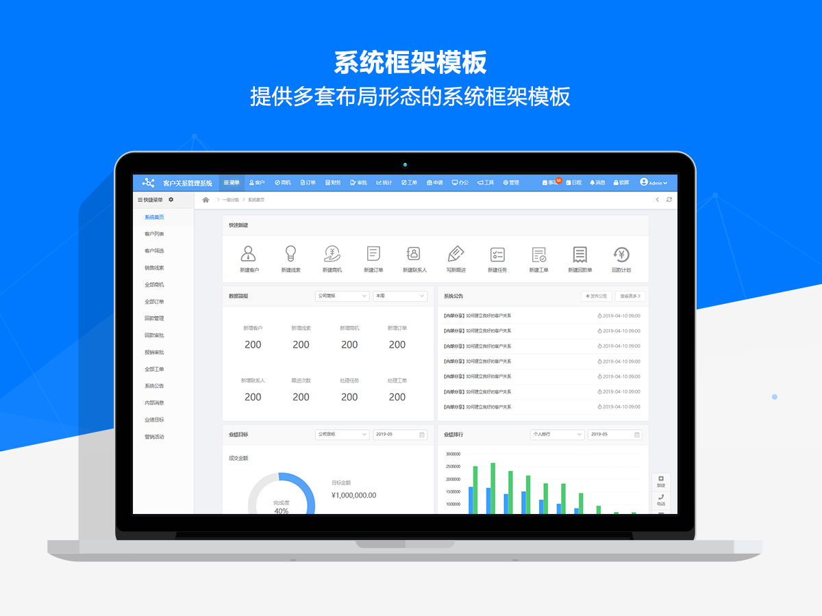 客户关系管理系统(简称:CRM)是最典型的企业产品应用之一, 主要用于为企业提高核心竞争力,利用信息技术以及互联网技术协调企业与顾客间在销售、营销和服务上的交互,从而提升其管理方式,向客户提供创新式的个性化的客户交互和服务的过程。本作品是一套通用型的CRM系统原型模板,主要由数据管理、审批流程、统计报表、办工协作、任务管理、工单管理、营销工具等几大模块组成,可以根据企业需求方便的进行扩展和定制。同时,作品中的大部分功能模块也适用于各类系统类应用产品使用场景,可以作为一套系统类产品原型设计的学习参考的案例。另外,作品中提供了4套比较典型的中后台系统类产品登录界面和系统框架方案,使用时可以根据需要调整框架的风格和布局形态,作品中还将所有通用的元素和组件进行了梳理,这些元素和组件也适用于任何系统类产品,可以帮助你最大程度的提升原型输出效率。