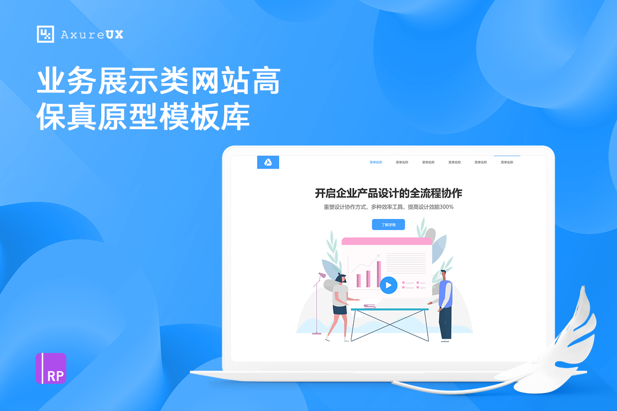 作品的主要内容共分为界面模板和模块组合两个大类,其中包含40多个设计美观的完整界面模板,以及近200个可快速复用模块组合元素。界面模板共分为首页模板、内页模板、单页模板、整站模板等4种类型,相关模板页面结构清晰合理,充分的应用了母版进行模块化布局,方便快速复用且便于扩展修改。模块组合中提供了导航、轮播、横幅、列表、客户、案例、页脚等20个分类的各种丰富的内容元素,使用时可以根据需要方便灵活的进行搭配。模块组合和界面模板均提供了可即拖即用的rplib格式版本,同时,对一些全局性的组件尽量使用母版进行了封装,只需复制粘贴即可快速应用到你的原型方案中。