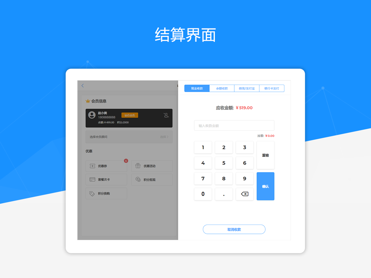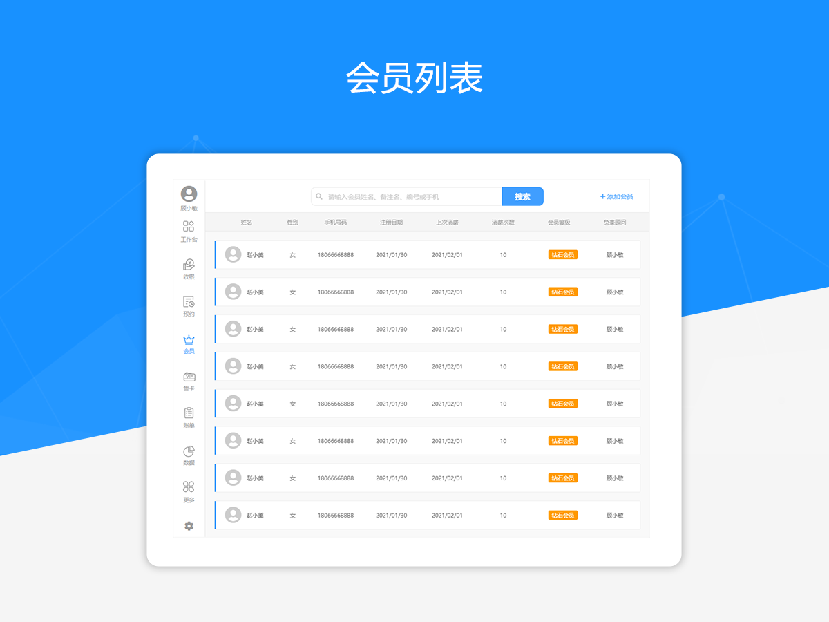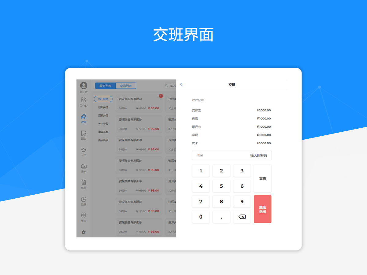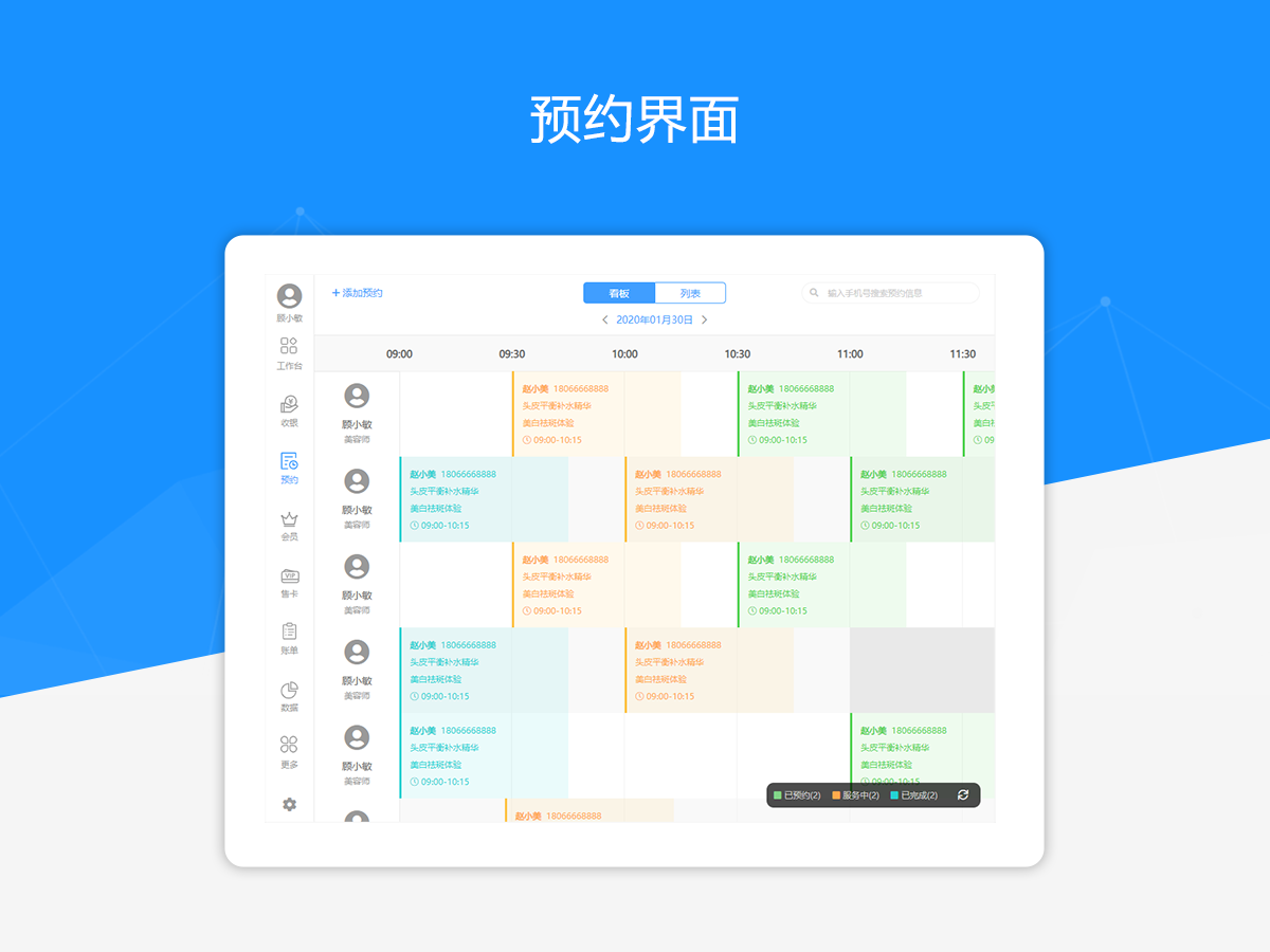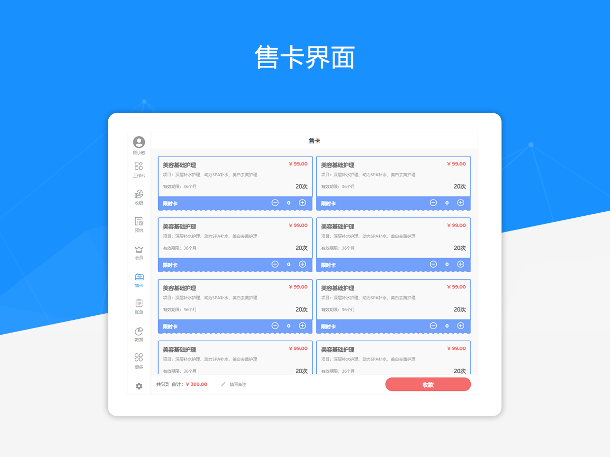 数字门店系统主要用于帮助传统线下服务门店转型为移动互联网门店,通过线下和线上的结合,提高门店经营效率,并通过会员制管理帮助门店精细化管理和服务好顾客,提升顾客回头率,打造忠实客户,从而提升门店的营收和利润。一套优秀的门店解决方案,可以轻松实现门店高效运营管理,本作品是一套数字门店POS端的高保真交互原型模板,主要由收银开单、预约服务、会员管理、账单管理、数据统计、商品管理、库存管理等核心功能模块组成。本模板主要以美业经营业务场景设计,主要适用于美容美体、美甲美睫、医疗美容、美发造型、医疗诊所、中医理疗、宠物服务等服务行业,而模板中的收银、账单、会员、库存等管理功能同样适用于各种典型的门店系统,可以根据实际的行业和产品需求的进行扩展。本作品仅为数字门店系统中的一个终端模板,在后续我们将还可能继续推出配套的管理端WEB后台系统和用户端小程序的原型设计模板。