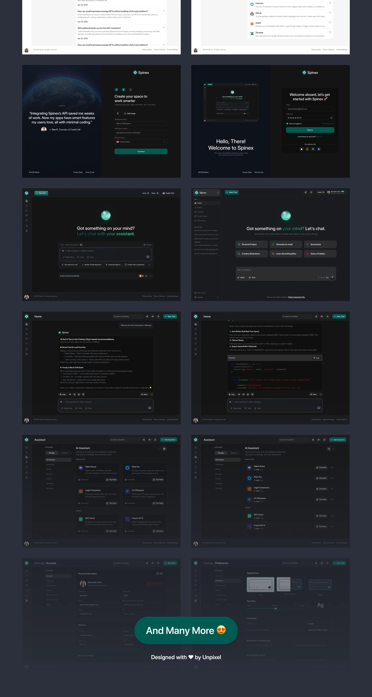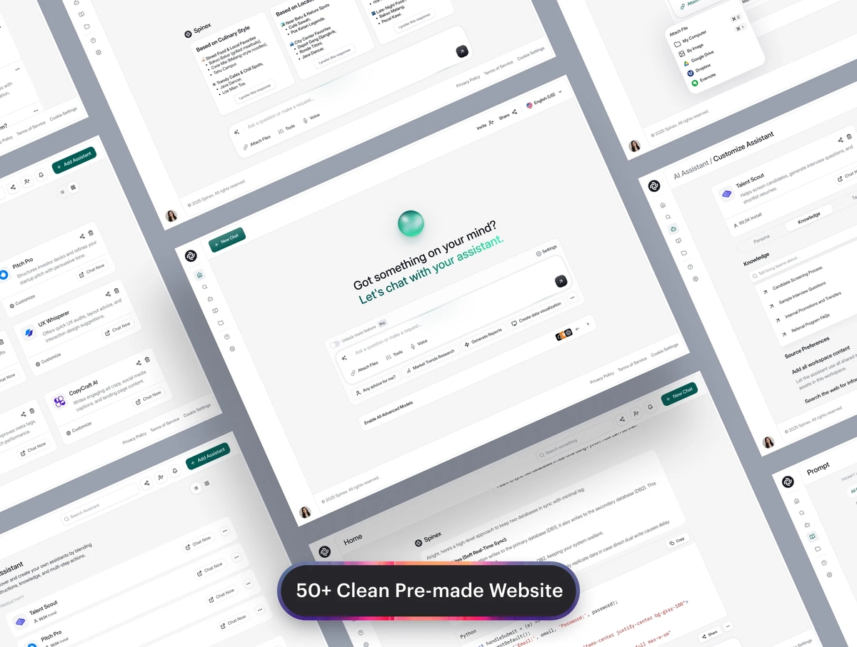 Spinex是一个AI仪表板UI套件,具有详细、高质量的界面,易于在Figma中使用。我们设计了50多个页面设计屏幕。一个高度详细的用户界面模板将帮助您为人工智能、聊天或相关项目设计任何类型的应用程序。这些屏幕也可用于其他产品设计。