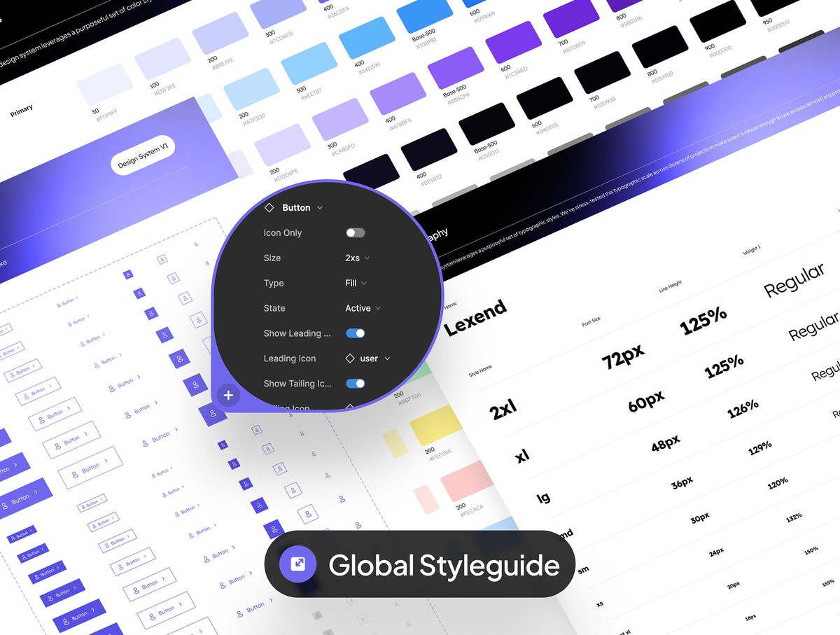 Figma 变量功能体验极佳!套件内置 80 + 个 Figma 变量,助你一键便捷定义配色、字体与各类样式。专属设计系统本 UI 套件配备一套功能完善的大型设计系统,内置本地变量与变体样式。所有界面元素均深度整合至该设计系统中,你只需在系统内修改 logo、按钮、输入表单、图标等任意元素,整套设计的所有界面就会同步自动更新。全量自动布局自动布局功能实用便捷!套件全程采用全量自动布局设计,你在编辑、删减、新增页面内容时,界面都能完美自适应调整;你也可自由调整框架尺寸,设计内容将根据框架大小自动响应适配。若你暂不熟悉自动布局操作,右键选中图层并选择「移除自动布局」即可关闭该功能。