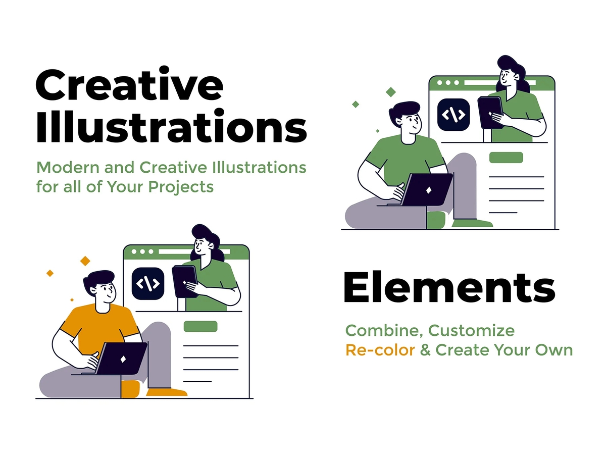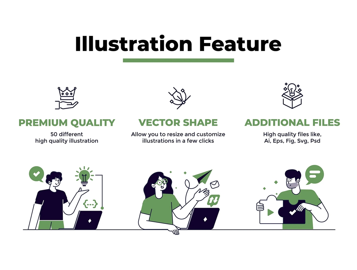 可用于网站、应用程序或演示文稿的专属创意插画,高效满足各类数字化设计需求,尤其适用于网站页眉区域的视觉搭建。50 款数字化商务主题创意插画超大合集,包含男女职场人物开展各类商务活动的场景插画,均为矢量格式插画基于矢量图形制作,图层分类清晰规整,可轻松编辑、自定义调整及无损缩放尺寸。