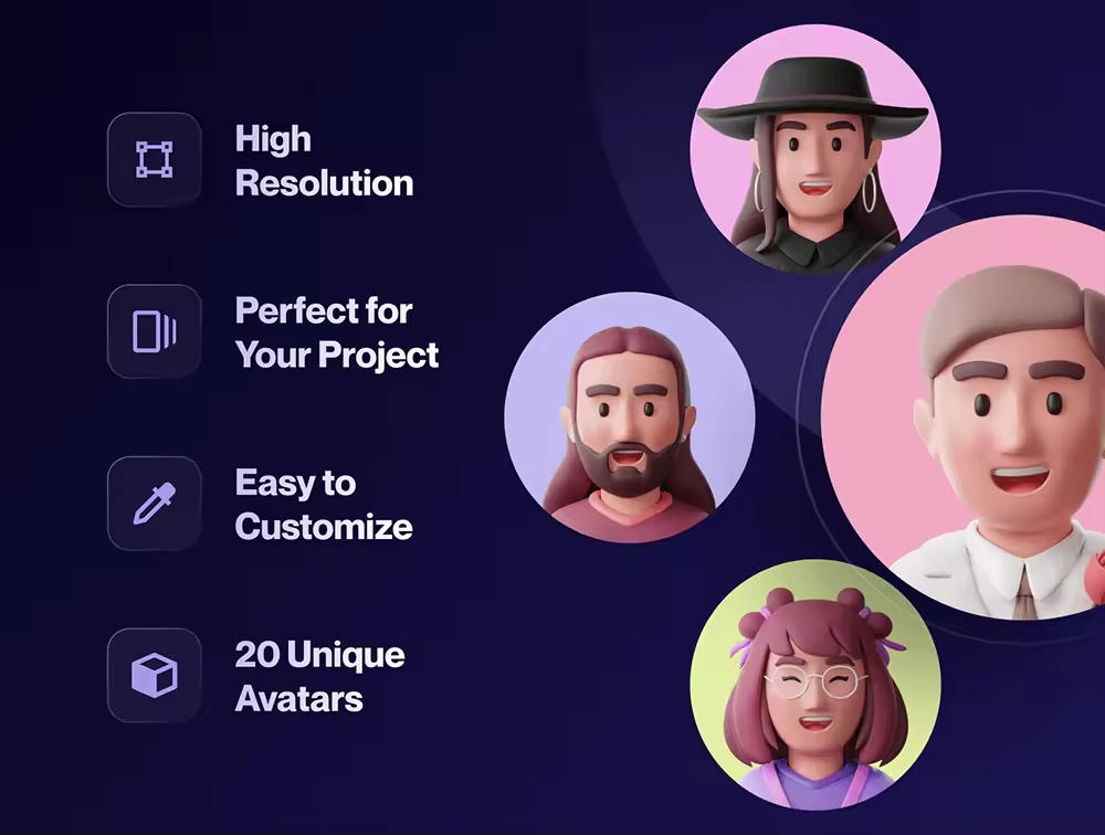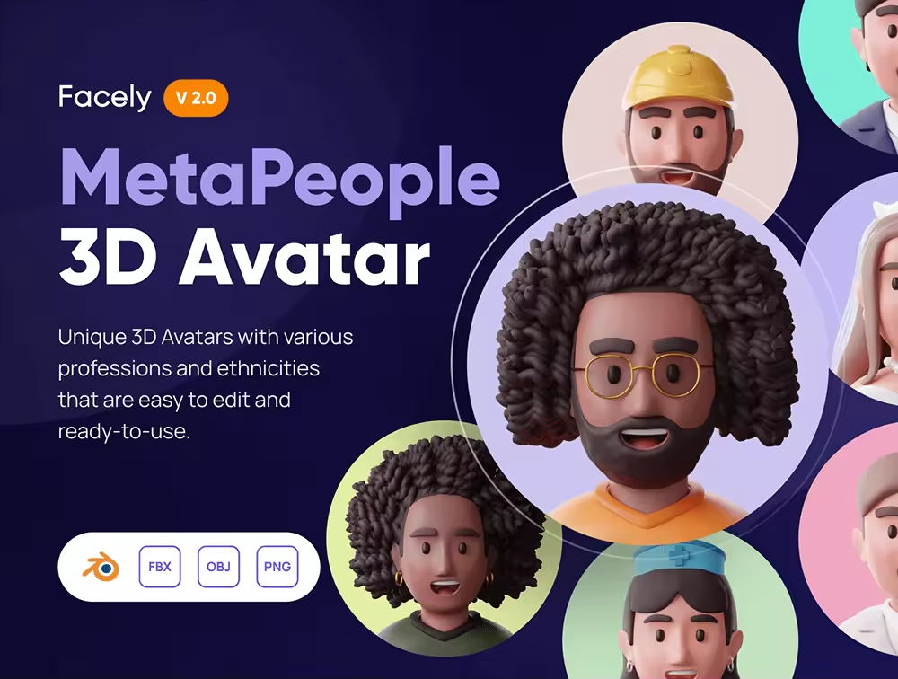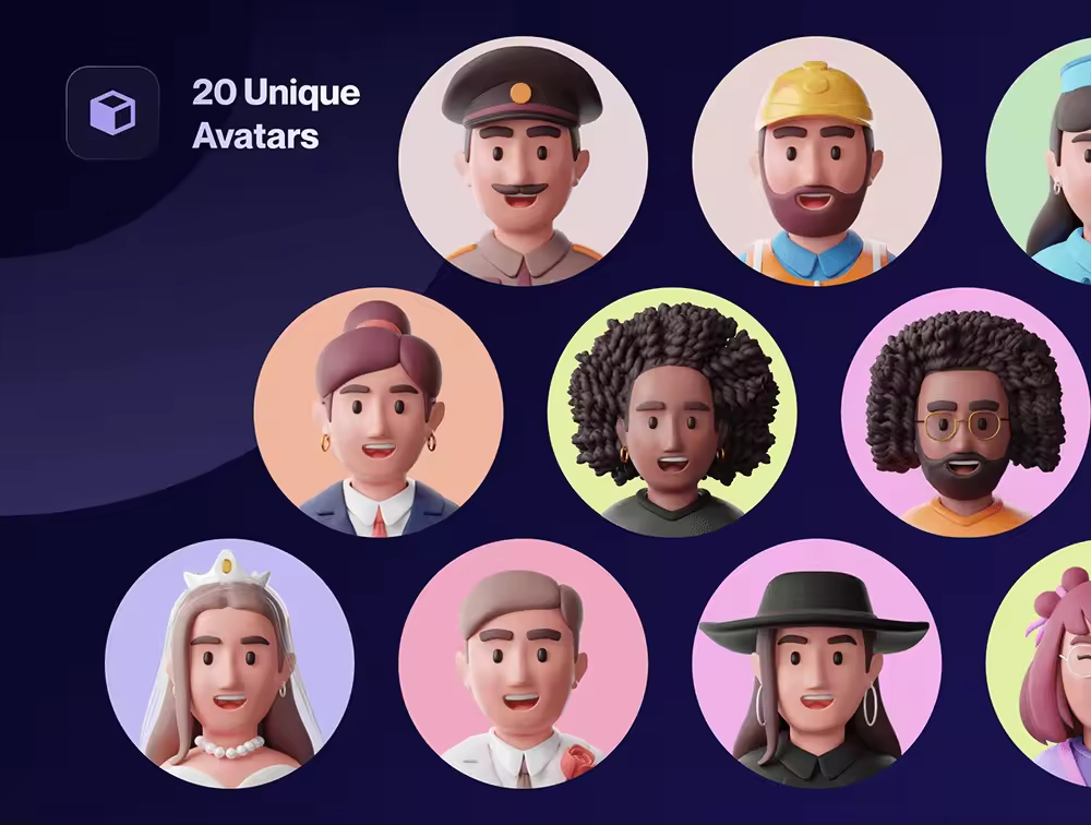 适用于各种职业和种族概况的自定义 3D 头像包。3D 头像易于编辑,可随时根据您的需要使用。使用 3D头像让您的下一个产品和项目更加惊艳。