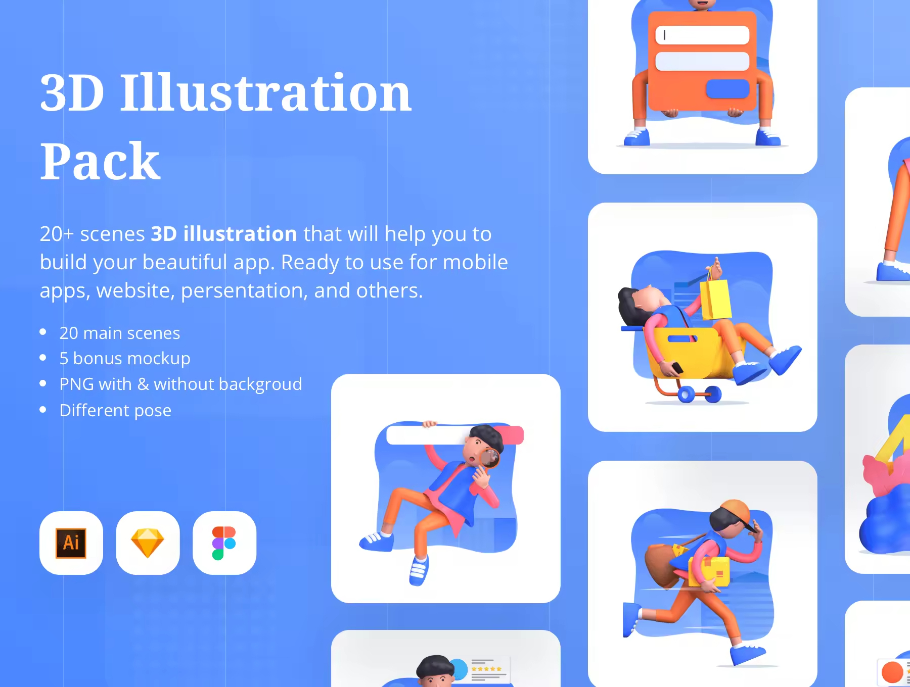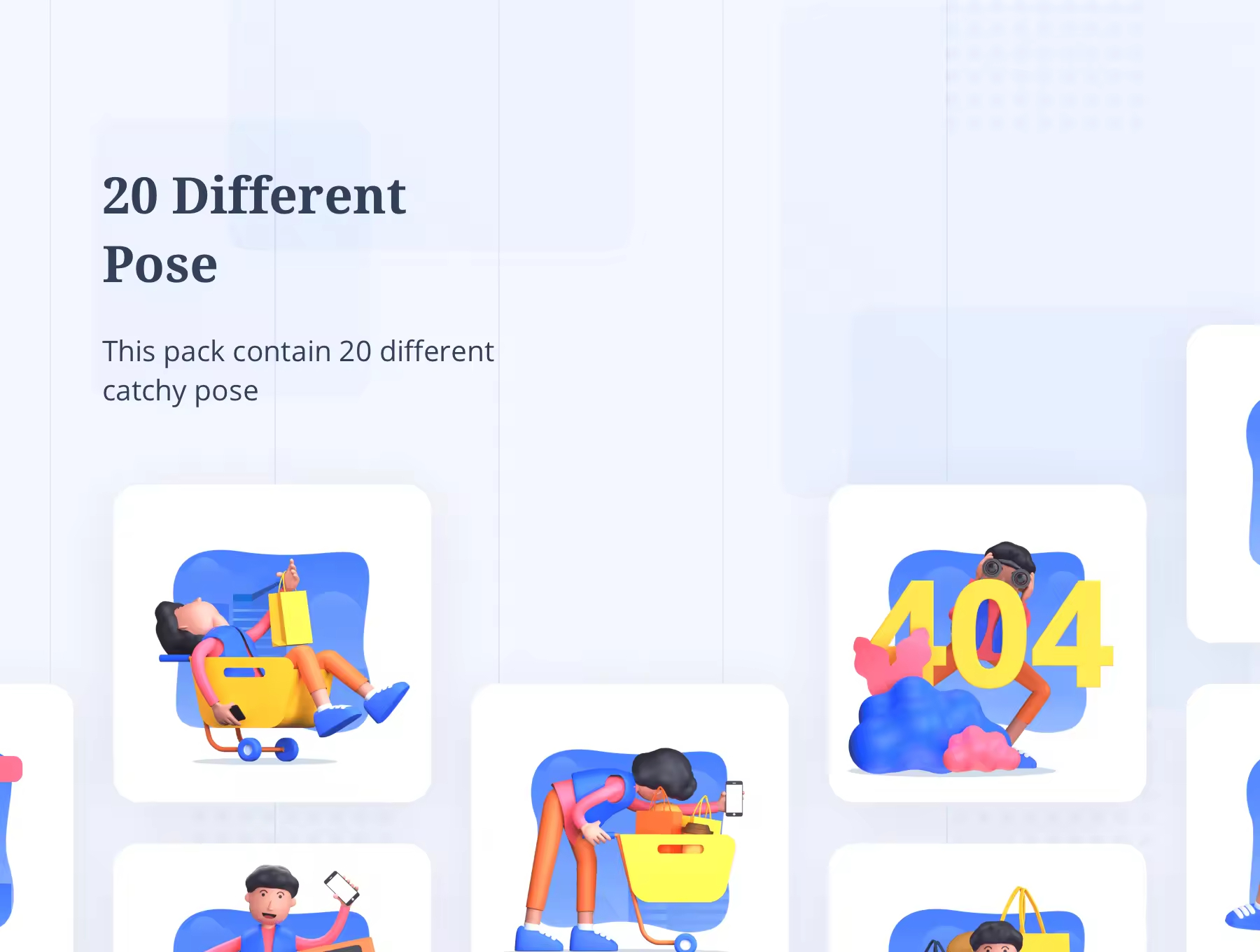 多状态3D插画素材包,包含 20 个不同的插画,由 Blender 渲染的 3D。背景形状 100% 矢量,您可以在 Illustrator 中进行编辑。