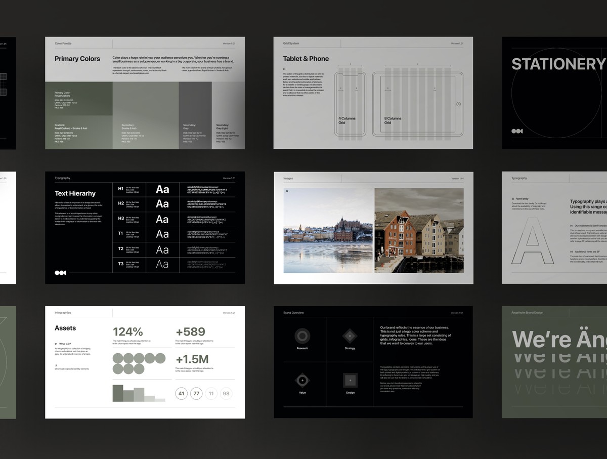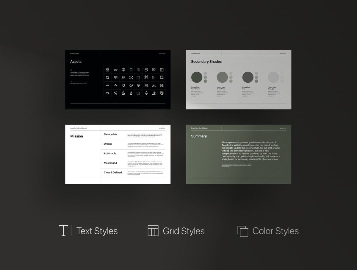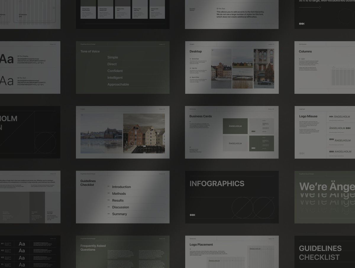 这是一套含真实文案、共50页的Figma/Sketch 双格式设计及品牌规范模板。如果你是需要向客户展示作品成果的设计师,或是为品牌打造了全新视觉风格、并希望呈现品牌规范正确使用方式的设计机构,这款模板将是你的理想之选。
