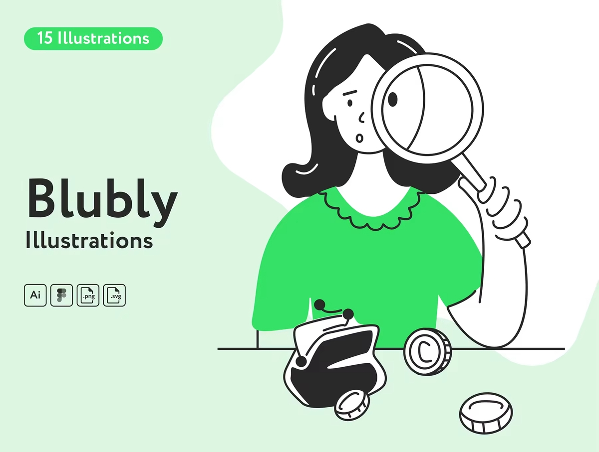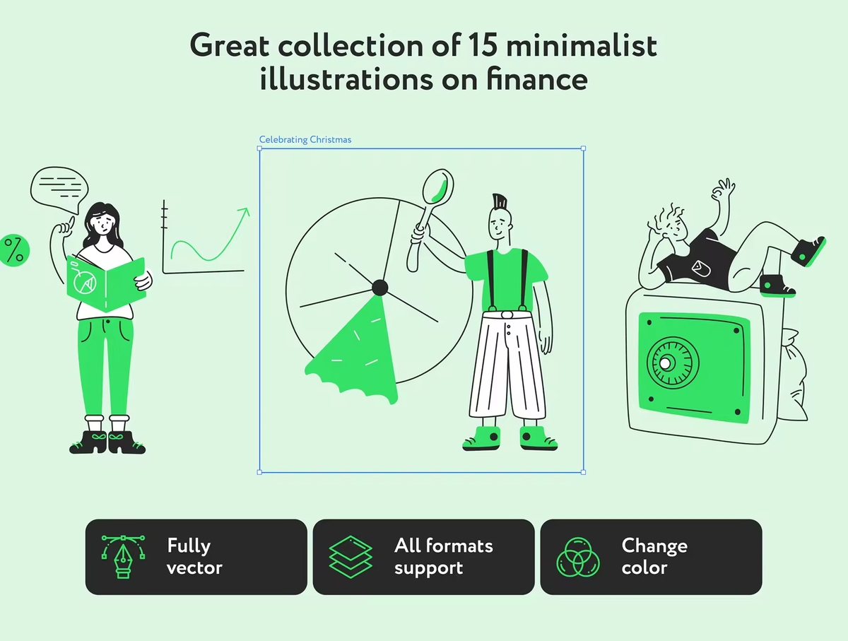 关于金融主题的 15 幅极简主义插画的精彩集合。这些插画将非常适合您的演示文稿、促销网页和文章的设计。轻松快速的改编将帮助您在项目和想法中快速实施插画。